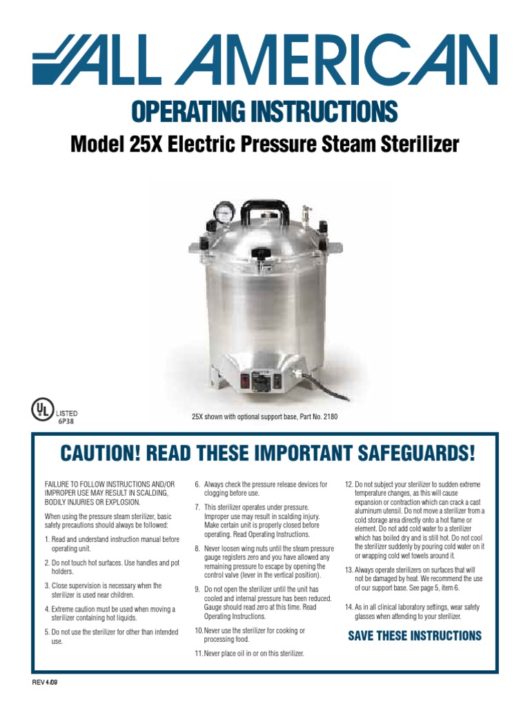 97+ pages autoclave all american 75x manual espaol 3mb. Autoclave all american 25x manual espaol Move your mouse over image IVA INCLUIDO Marca. Autoclave all american 75x manual espaol. Large Benchtop Autoclave Sterilizer - 120 volt273 Qt Inner Container Capacity Large Benchtop Autoclave Sterilizer - 120 volt. Check also: espaol and understand more manual guide in autoclave all american 75x manual espaol All American Sterilizer OnOff Toggle Switch 25X 50X 75X 640020 All American Sterilizer OnOff Toggle Switch 25X 50X 75X 640020 Be the first to review this product.